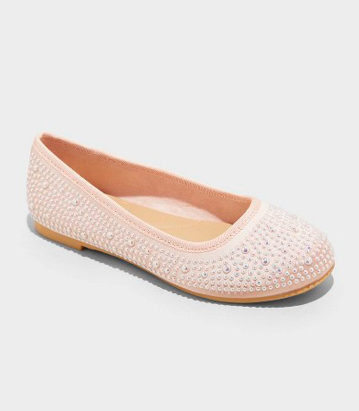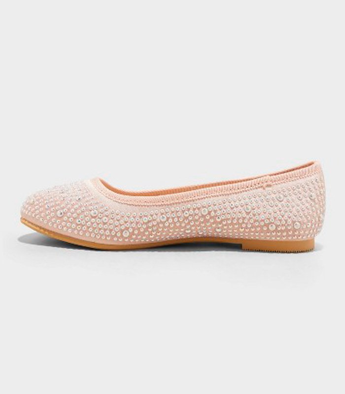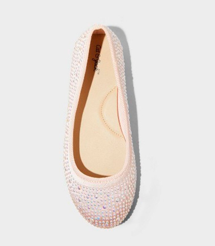 Ballerinas infantiles Cat & Jack con diseño cerrado tipo flat y perlas decorativas. Un modelo elegante, cómodo y versátil ideal para looks casuales o especiales.