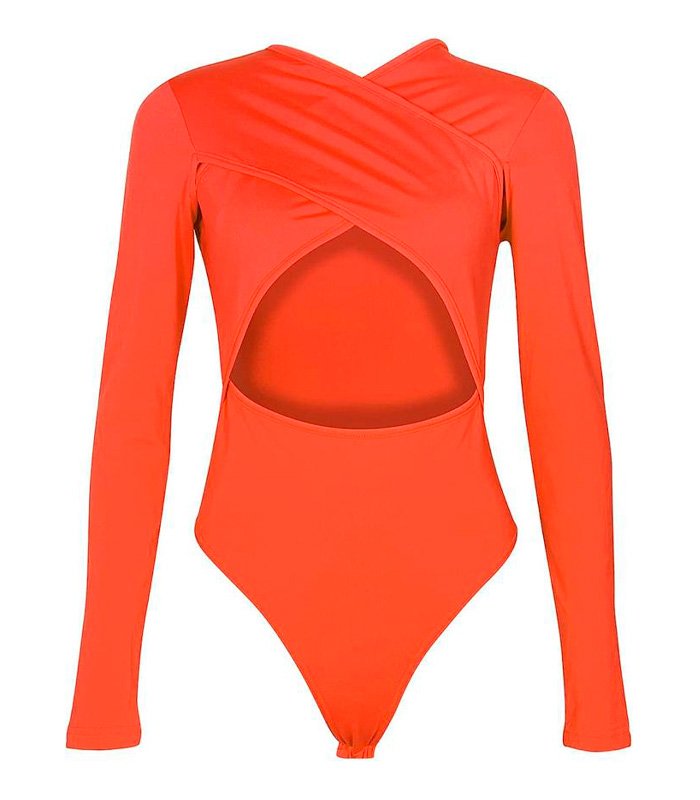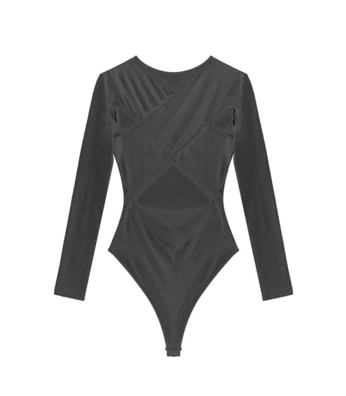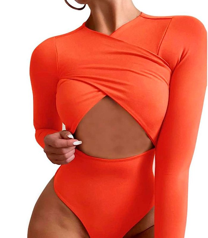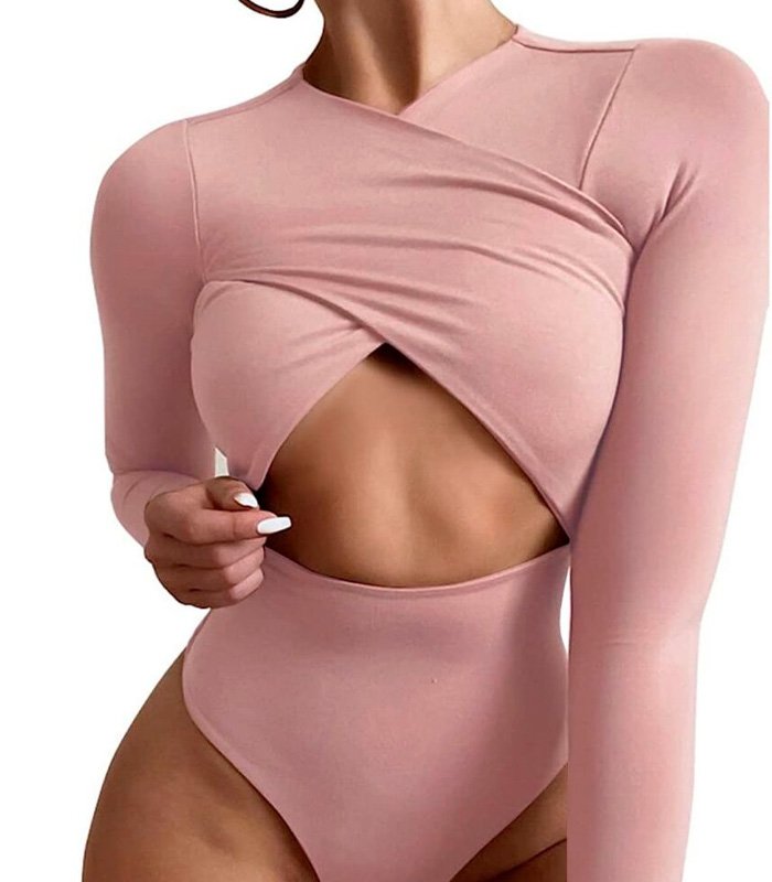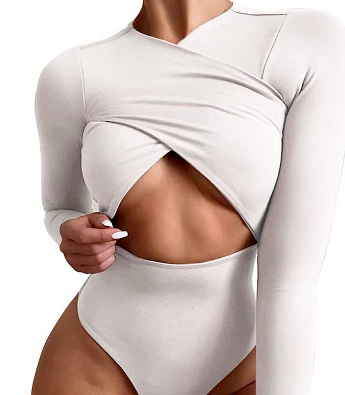 Body ajustado manga larga mujer con corte cruzado frontal. Tejido suave, fit favorecedor y estilo perfecto para looks de noche y club.