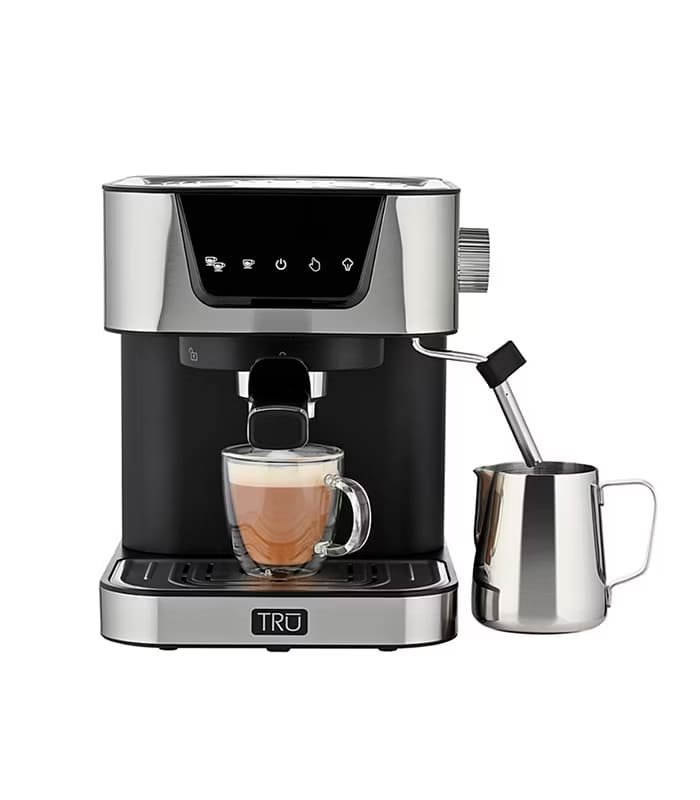 Cafetera Espresso TRU con Vaporizador de Leche 1.5L Acero Inoxidable