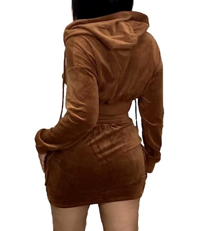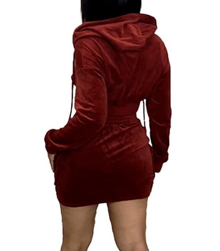 Conjunto terciopelo mujer 2 piezas con capucha | Minifalda
