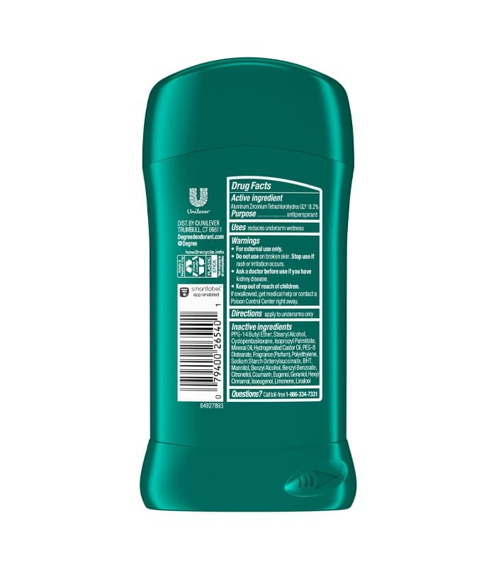Degree Men Cool Rush 2.7 oz ofrece protección antitranspirante por 48 horas con aroma fresco y tecnología MotionSense que se activa con tu movimiento.