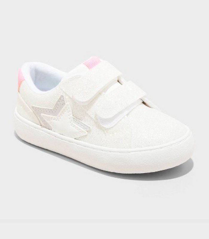 Tenis infantiles Cat & Jack con diseño deportivo, acabado glitter y cierre de velcro. Modelo cómodo, moderno y práctico ideal para uso diario.