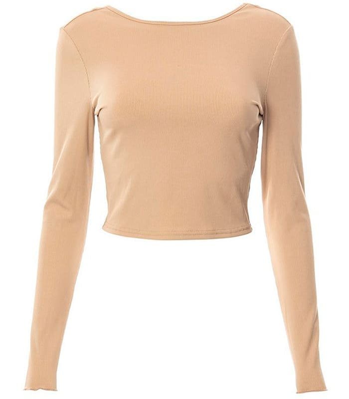 Top corto acanalado con espalda descubierta y cadena ajustada. Una prenda sexy y moderna que combina comodidad, estilo y actitud.
