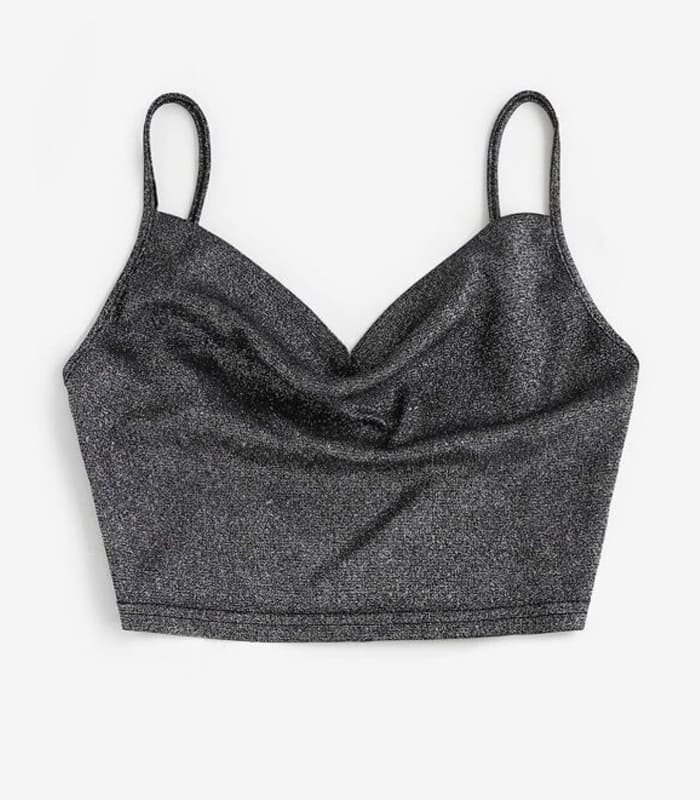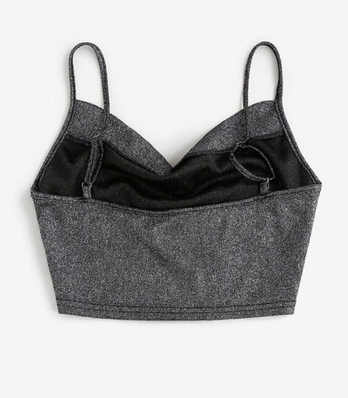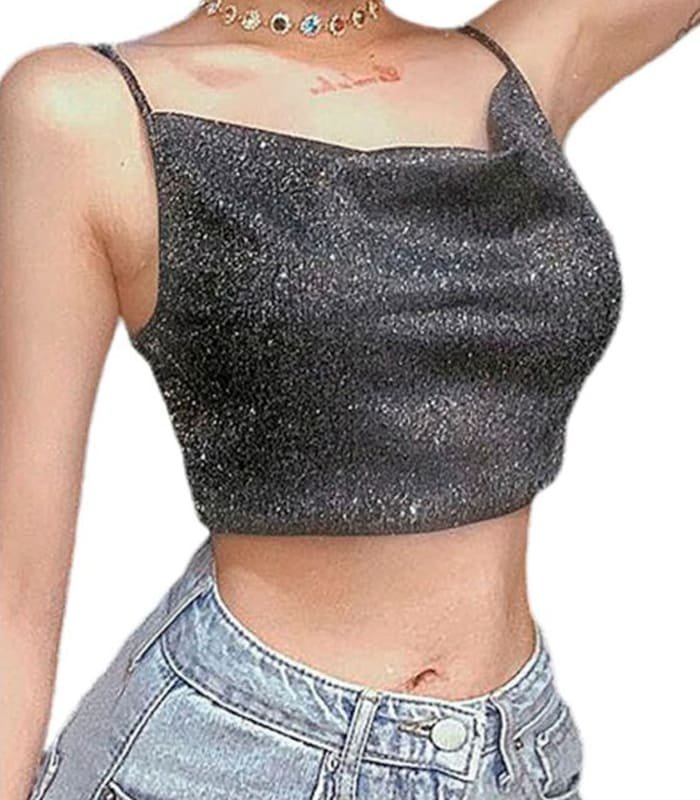 Top corto de verano para mujer con tirantes finos brillantes. Ligero, moderno y cómodo, perfecto para destacar con estilo en los días más cálidos.
