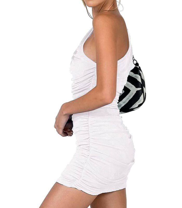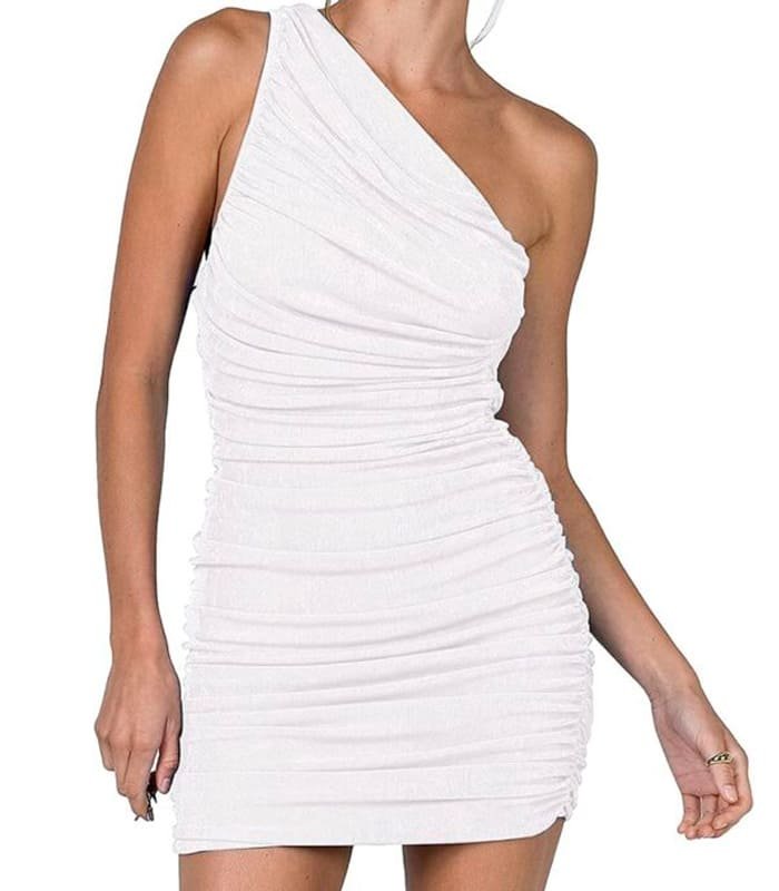 Vestido corto fruncido de un hombro para mujer: sofisticación y estilo