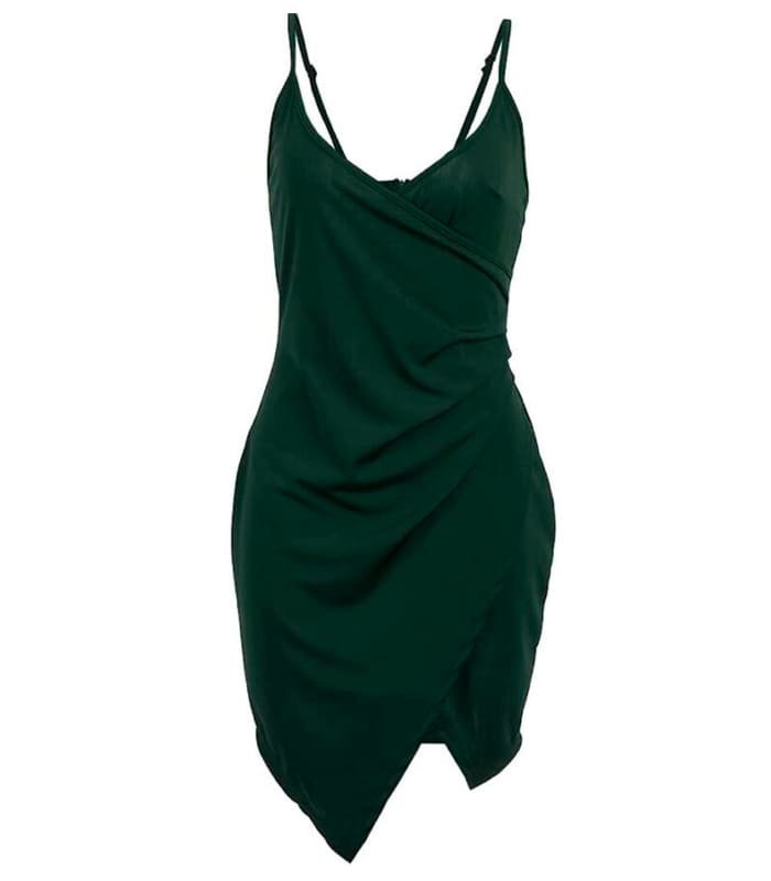 Vestido invitada boda mujer con tirantes ajustables, fruncido y entallado. Mini y sin espalda, ideal para fiestas, bodas y celebraciones.