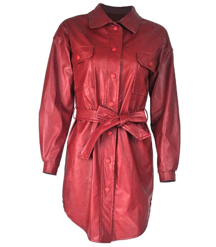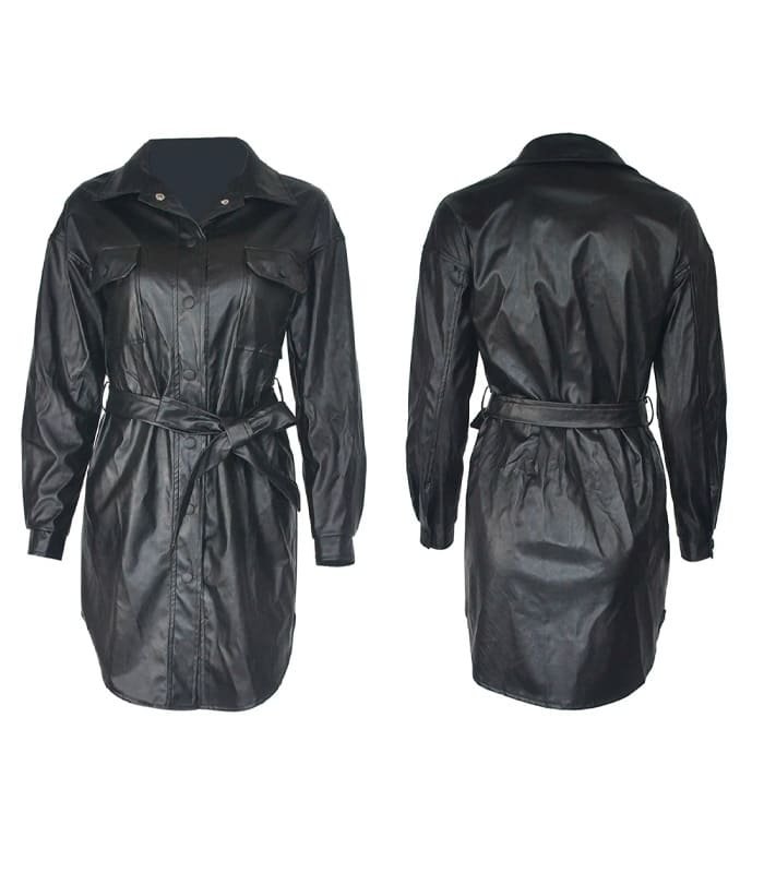 Vestido piel sintética mujer con botones, cuello en V y cinturón. Elegante, moderno y perfecto para lucir un estilo único.